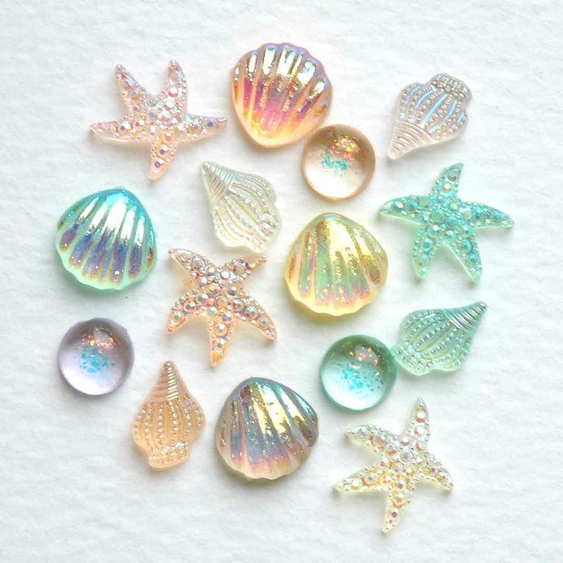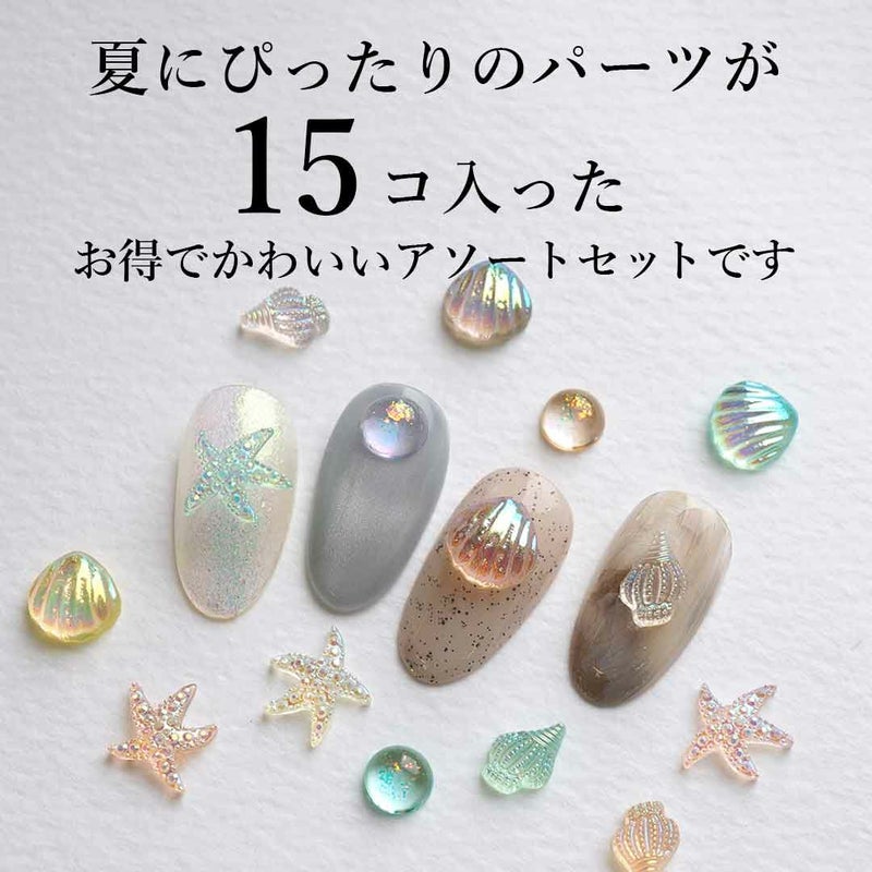 定番のヒトデや貝はもちろん、使いやすいしずくストーンも入ってます。