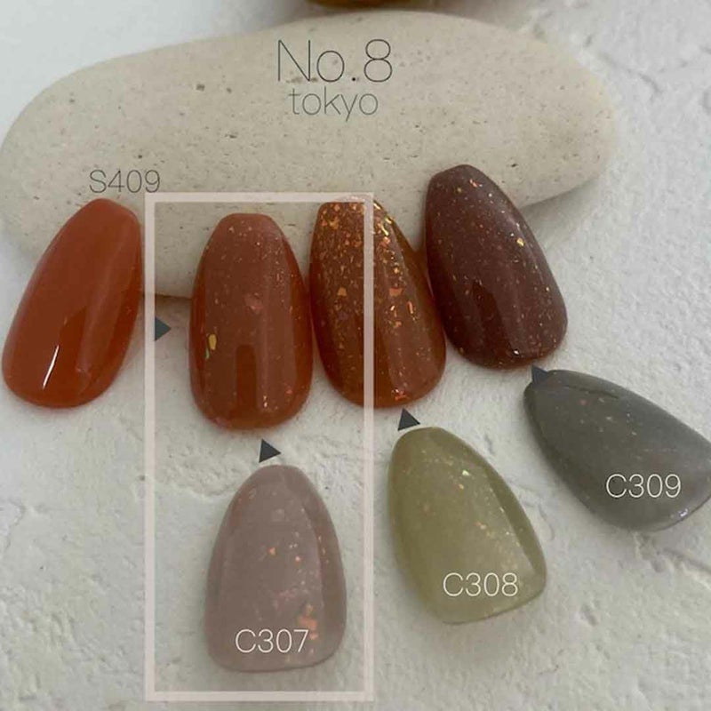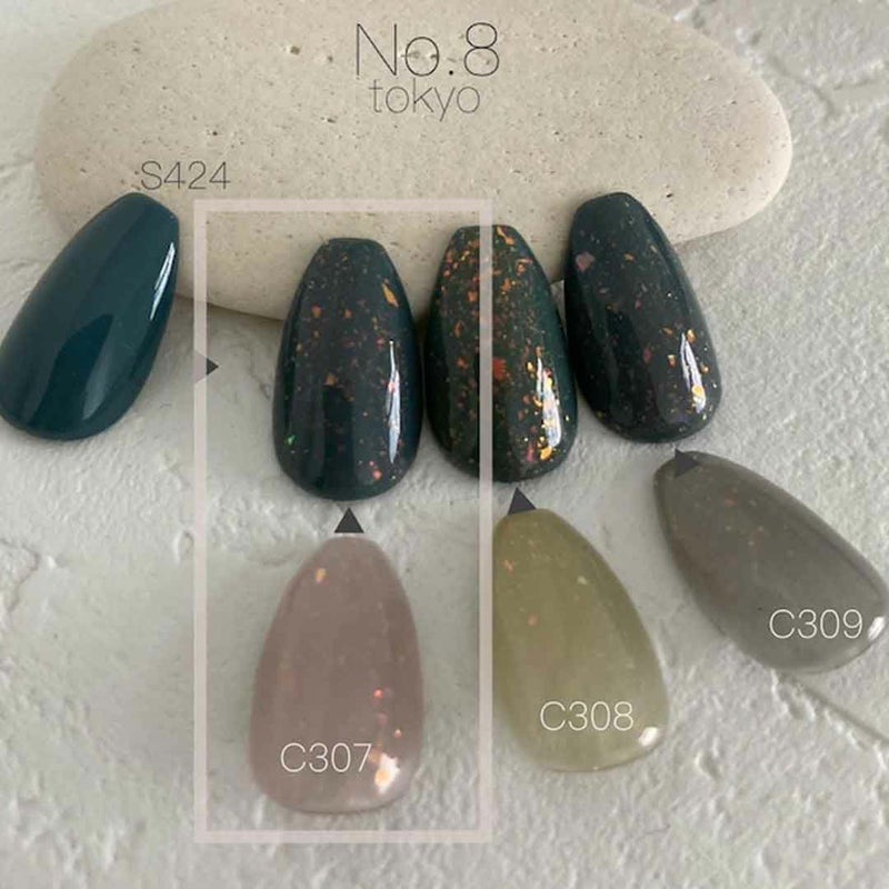 透け感の強いスモーキーピンクをベースに極薄のダズリングパウダーがピンク・オレンジピンク・ゴールド・パープル等に光ります。