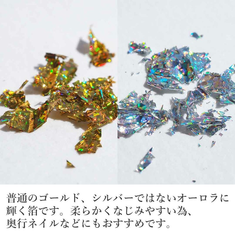 普通のゴールド、シルバーではないオーロラに輝く箔です。