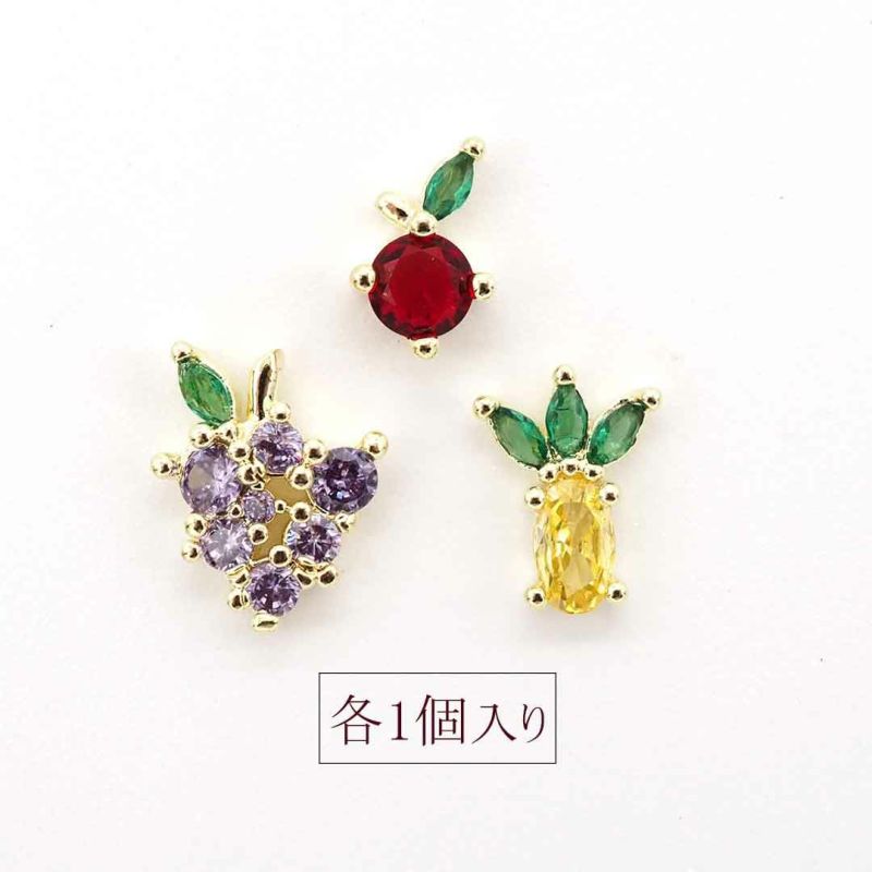 鮮やかな色合いで可愛いらしいアップル、パイナップル、グレープが3個入ったビジュー♪