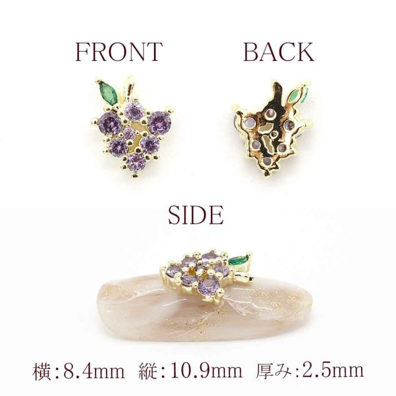 - サイズ:パイナップル約6.2×9.0mm 厚み:3.0mm、アップル約5.3×7.2mm 厚み:3.1mm、グレープ約8.4×10.9mm 厚み:2.5mm