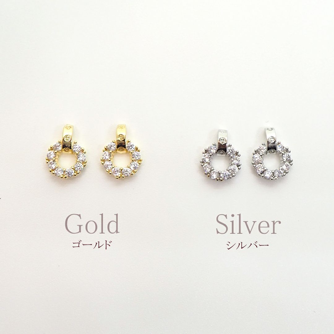 【在庫限り】ビジュー キュービックジルコニア ラウンドデザインフレーム 約9.8×9.8mm 2個入り