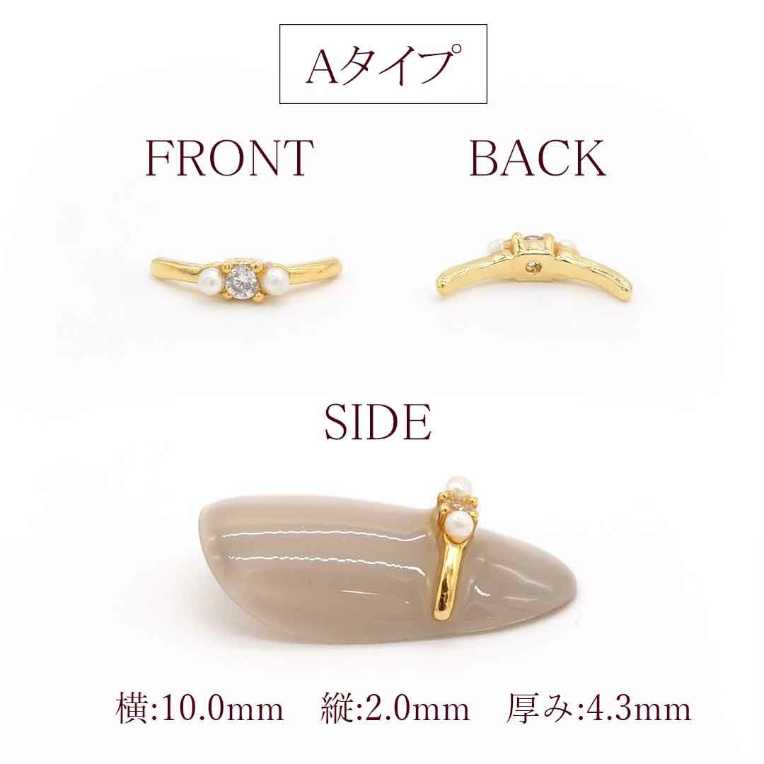 【在庫限り】ビジュー リボン ストーン&パール カーブ付き 約6.6×3.8mm 3個入り