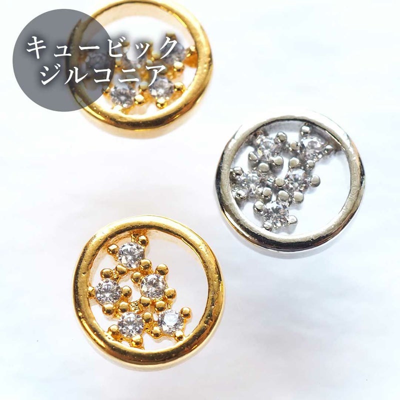 ストーン(キュービックジルコニア)の丸型メタルパーツ。