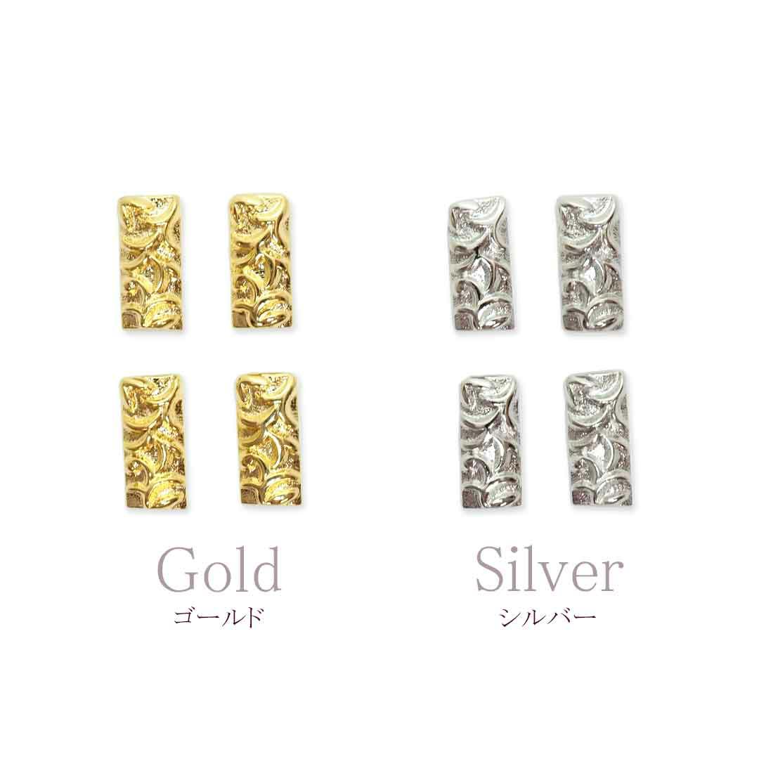 メタルパーツ スクエアレリーフ カーブ付き 約4.0×8.7mm 4個入り