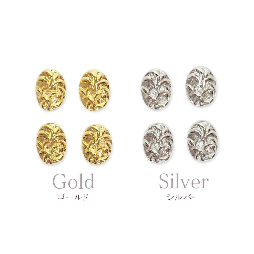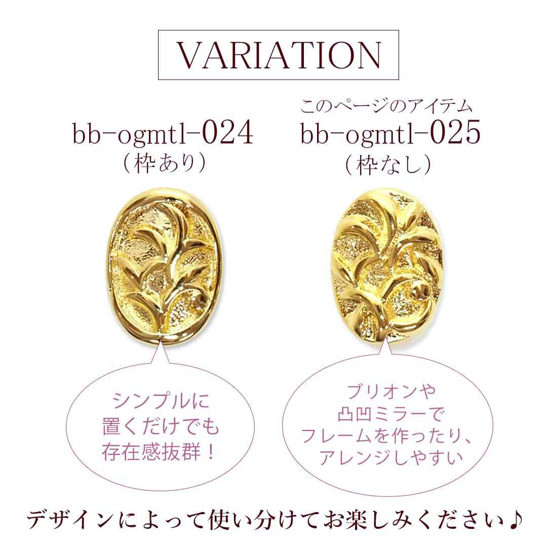 メタルパーツ オーバルレリーフ カーブ付き 約6.3×8.4mm 4個入り
