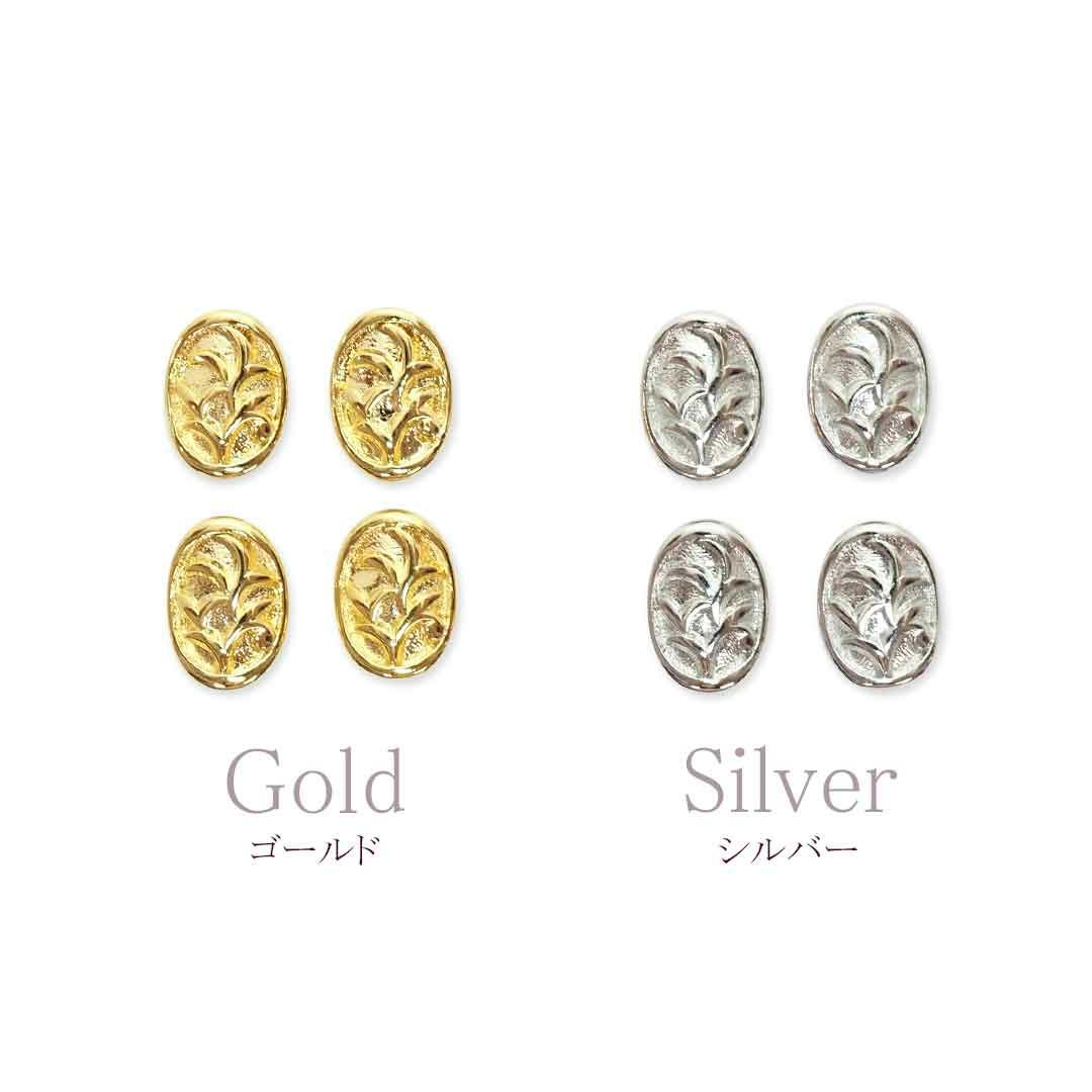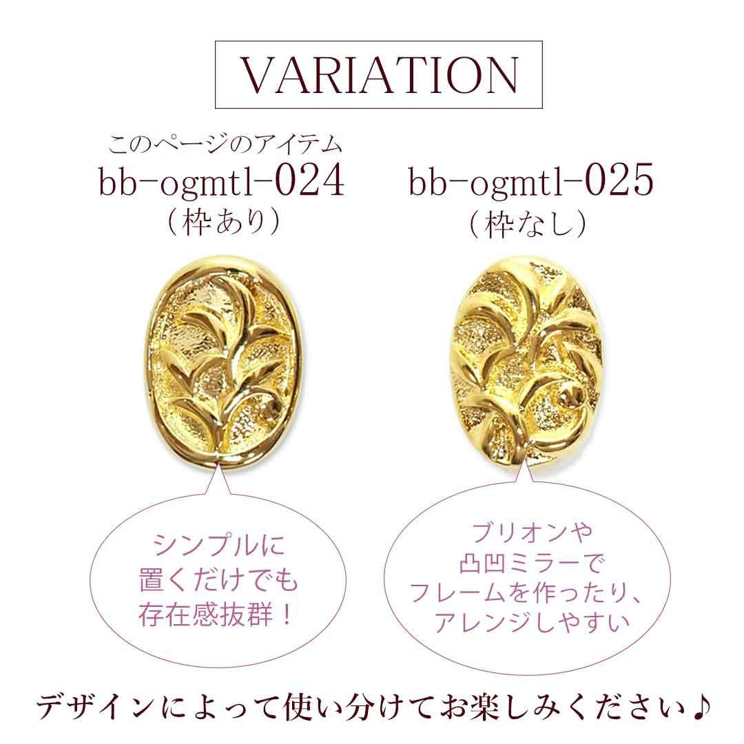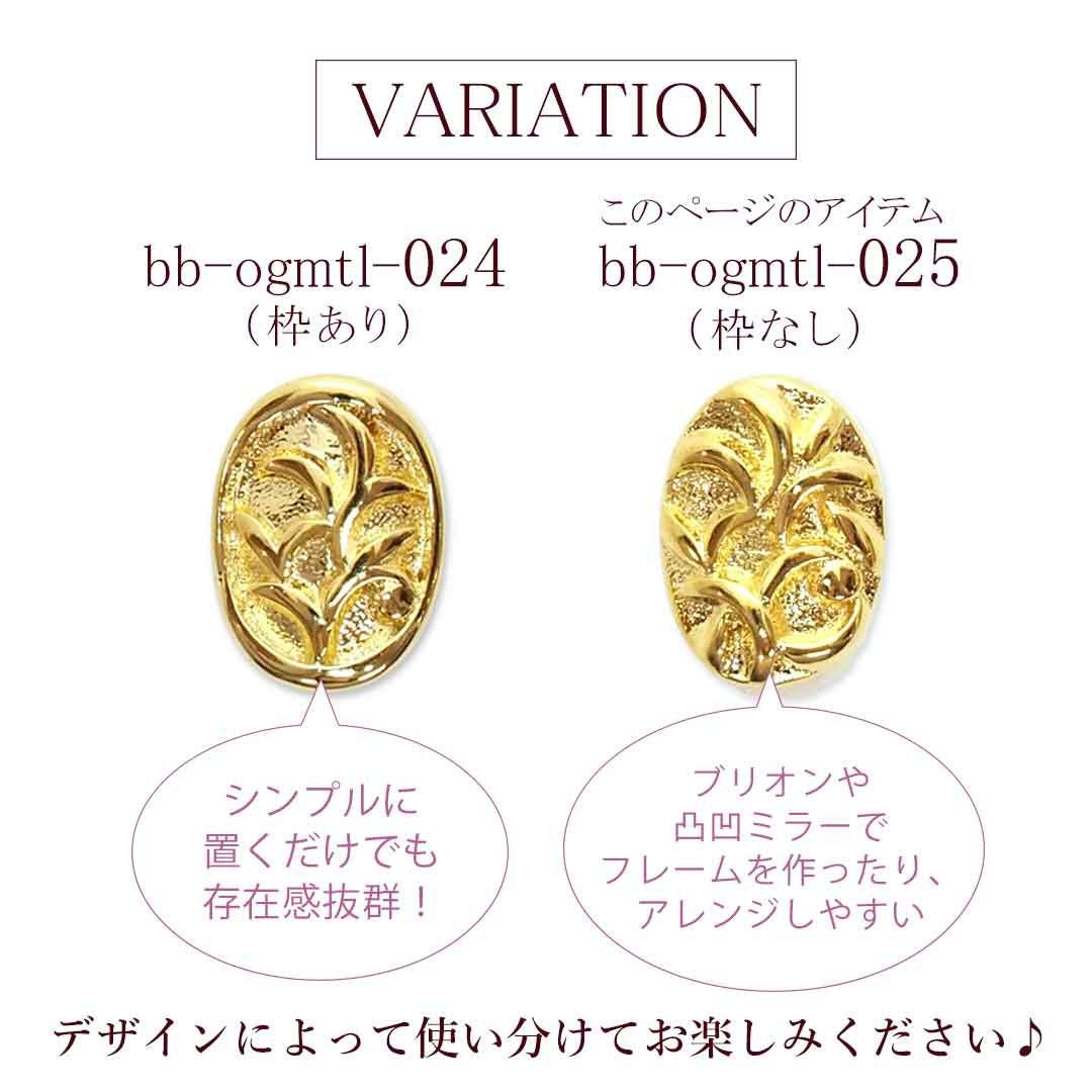 メタルパーツ オーバルレリーフ カーブ付き 約6.3×8.4mm 4個入り