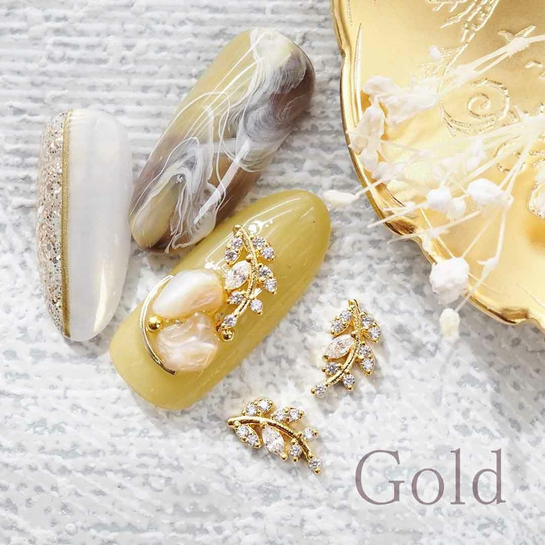 ビジュー キュービックジルコニア リーフ 約5.0×9.0mm 2個入り