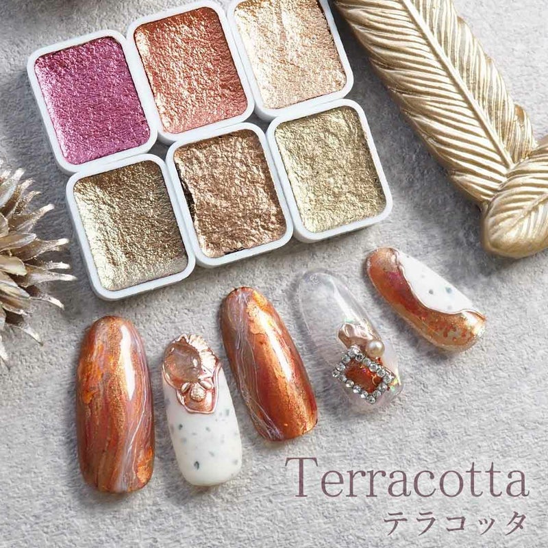 水彩パレットを爪の淵に多く塗るとジェルとの定着が悪くなる場合がございますのでご注意ください。