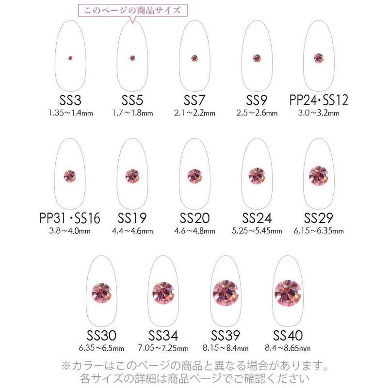 まるでダイヤモンドのような美しい輝きなので、ネイルアートはもちろんアクセサリーパーツ、デコレーションパーツなどにもおすすめのラインストーンです。