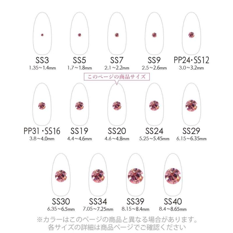 まるでダイヤモンドのような美しい輝きなので、ネイルアートはもちろんアクセサリーパーツ、デコレーションパーツなどにもおすすめのラインストーンです。