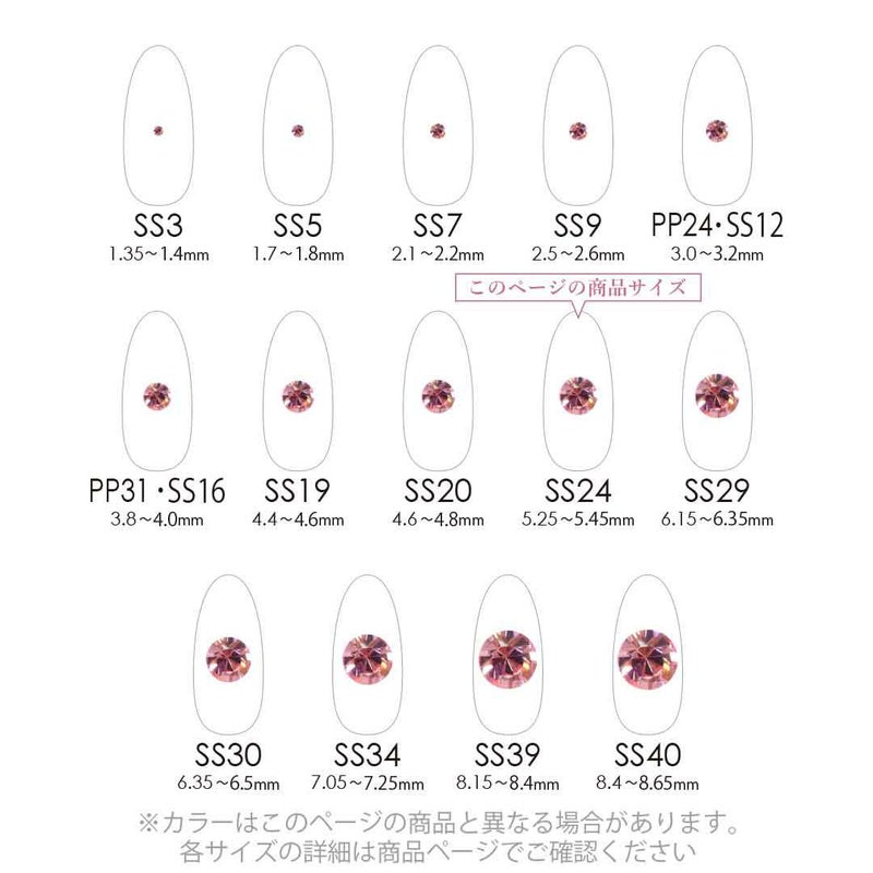まるでダイヤモンドのような美しい輝きなので、ネイルアートはもちろんアクセサリーパーツ、グルーデコなどにもおすすめのラインストーンです。