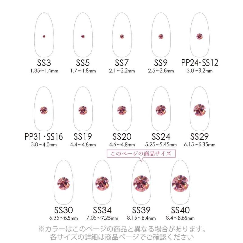 まるでダイヤモンドのような美しい輝きなので、ネイルアートはもちろんアクセサリーパーツ、グルーデコなどにもおすすめのラインストーンです。