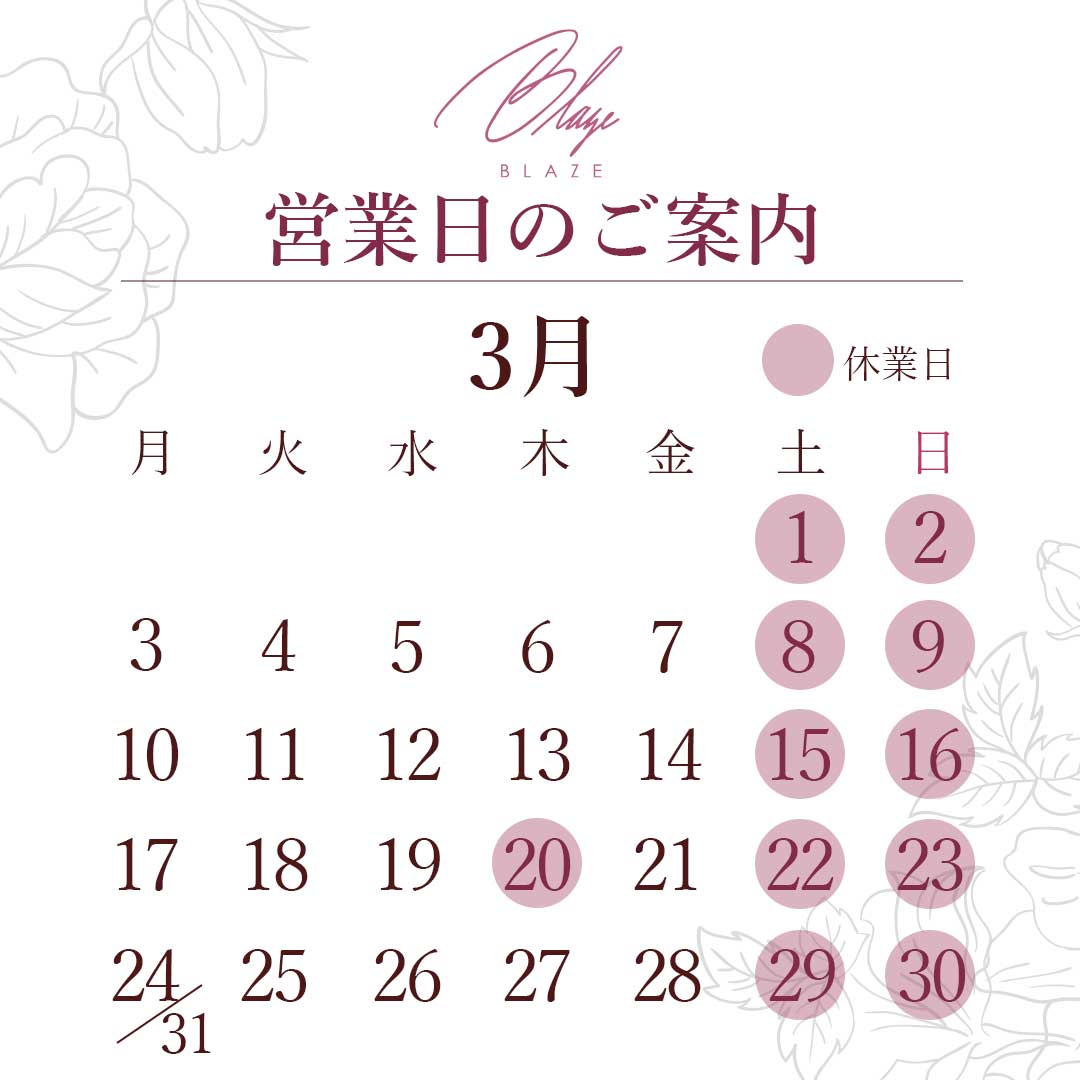 3月営業日のご案内