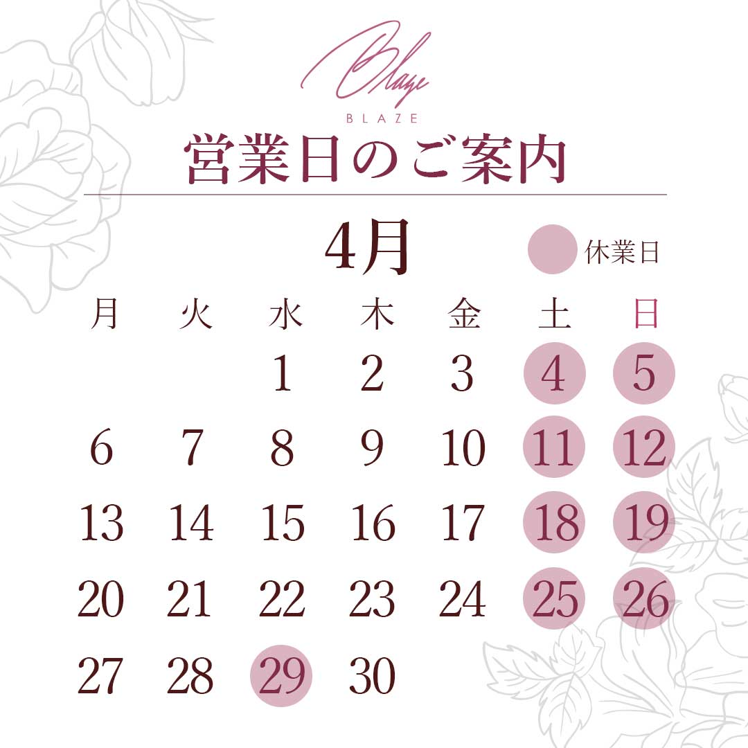 4月営業日のご案内