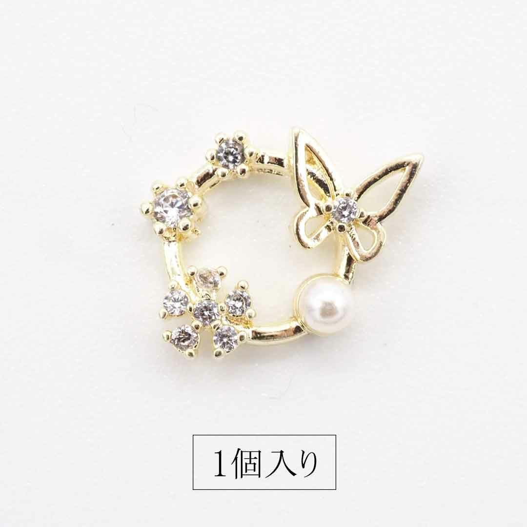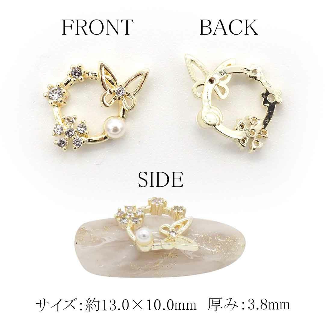 ビジュー 蝶々ラウンドフレーム カーブ付き 約13.0×10.0mm 1個入り