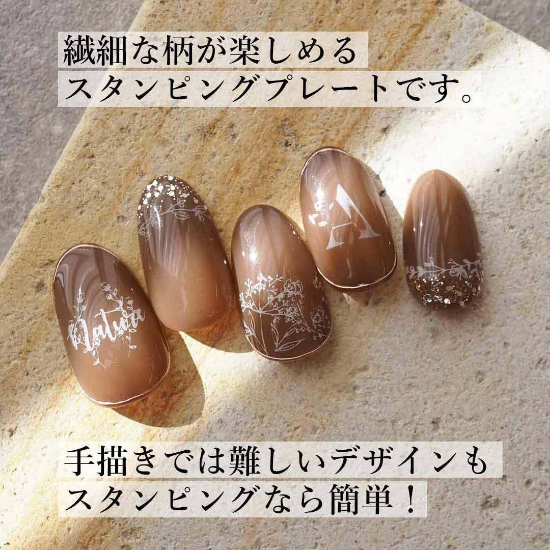 スタンピングプレート ナチュラルフラワー&英字