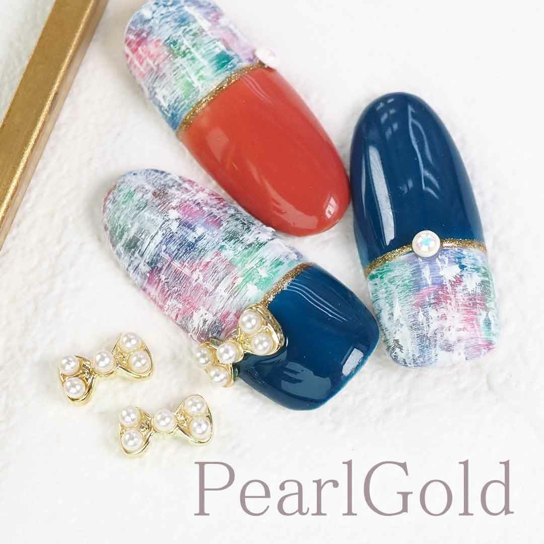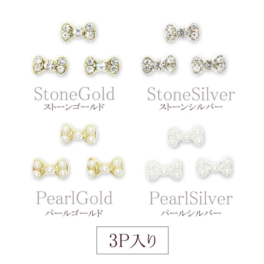 【在庫限り】ビジュー リボン ストーン&パール カーブ付き 約6.6×3.8mm 3個入り