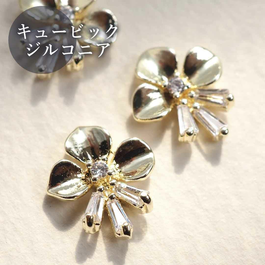 ビジュー キュービックジルコニア フラワー 約9.5×10.9mm 2個入り