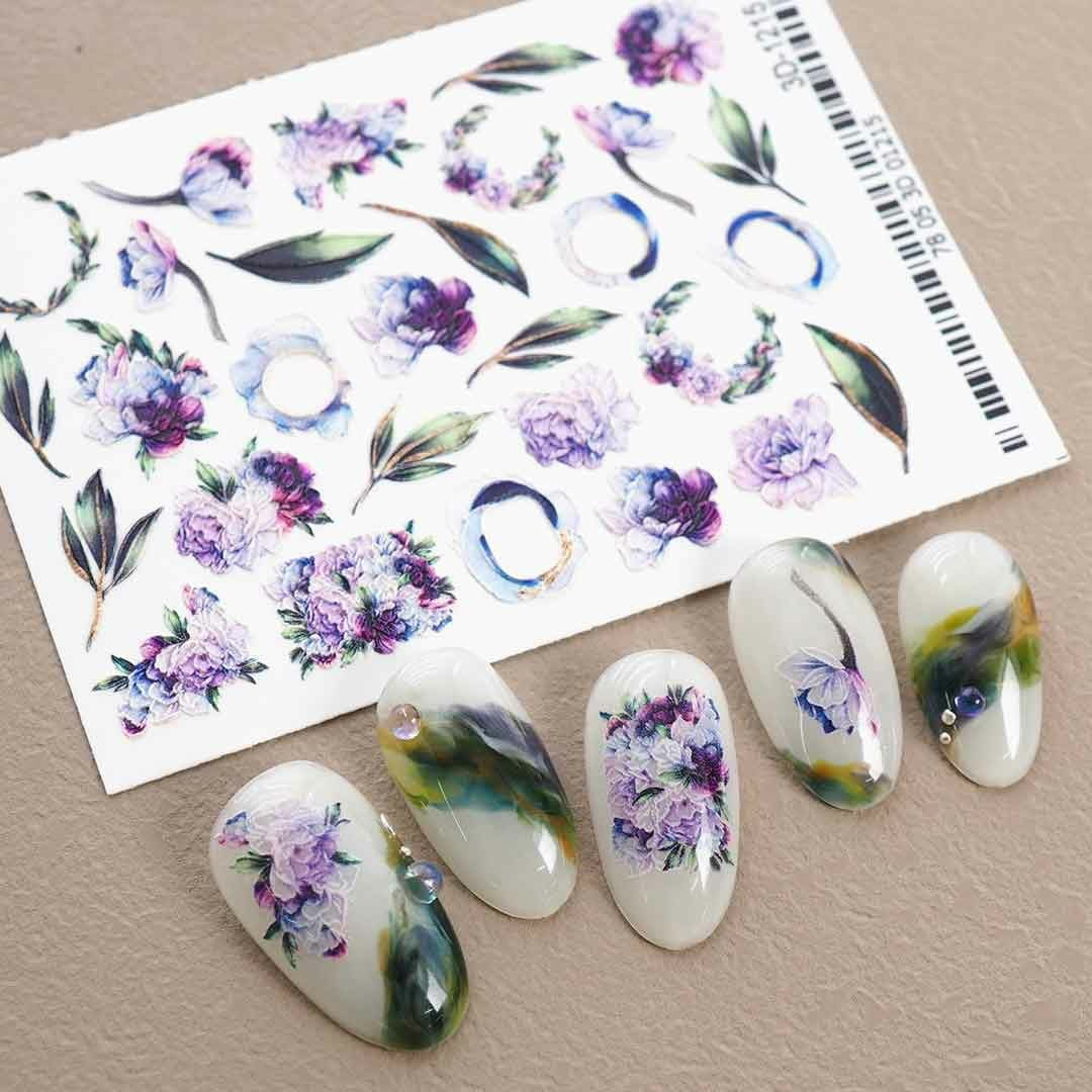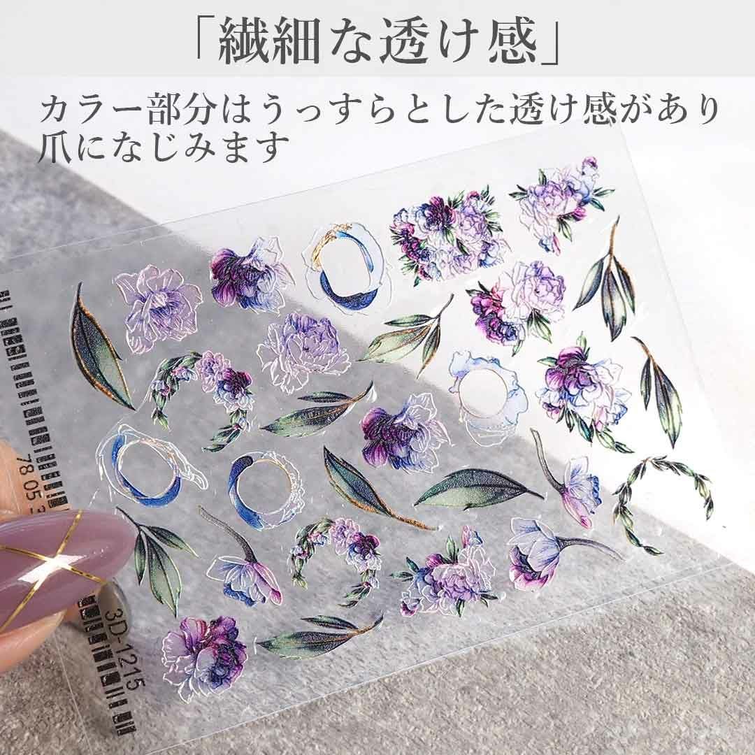 ウォーターネイルシール エンボスマット パープルフラワー&リーフ