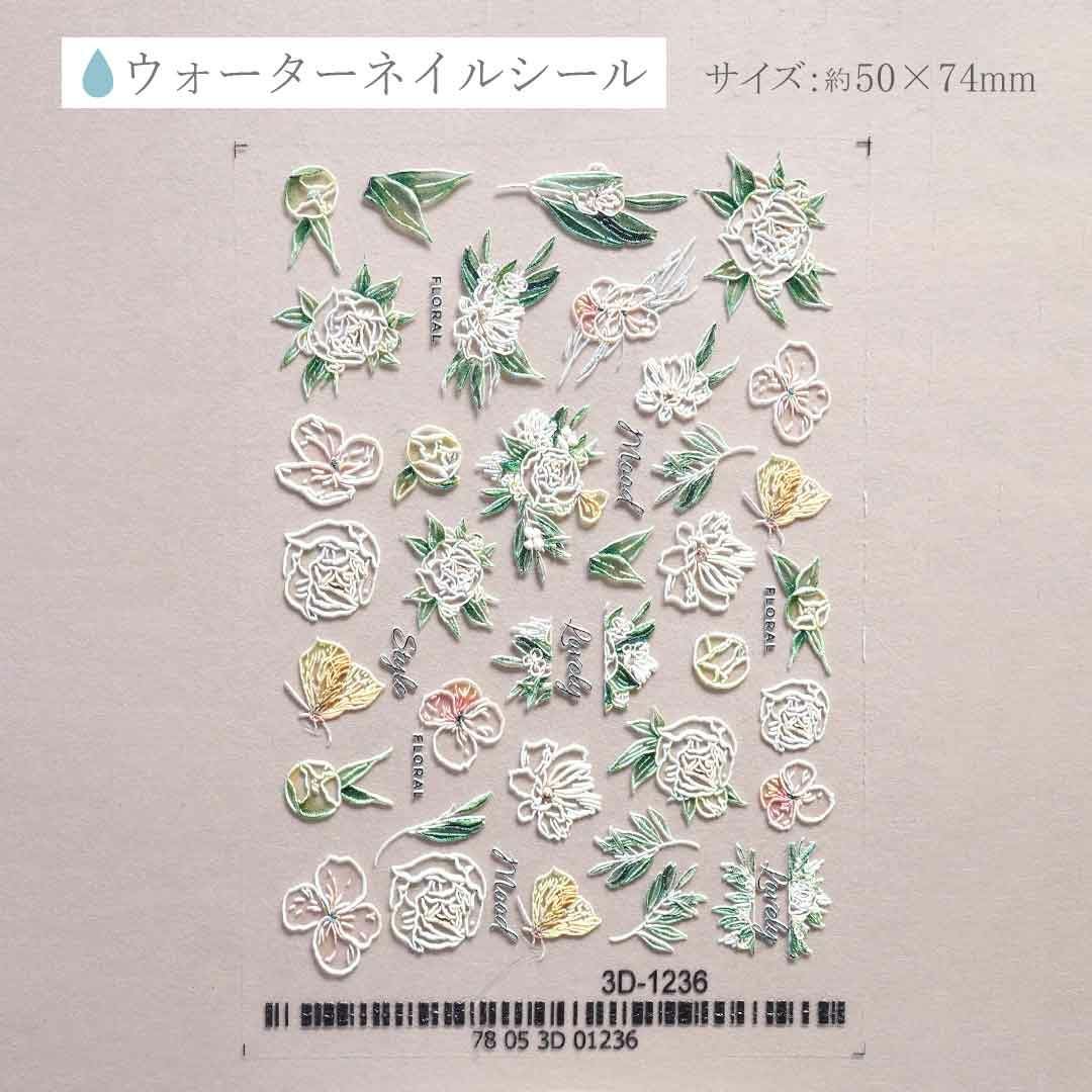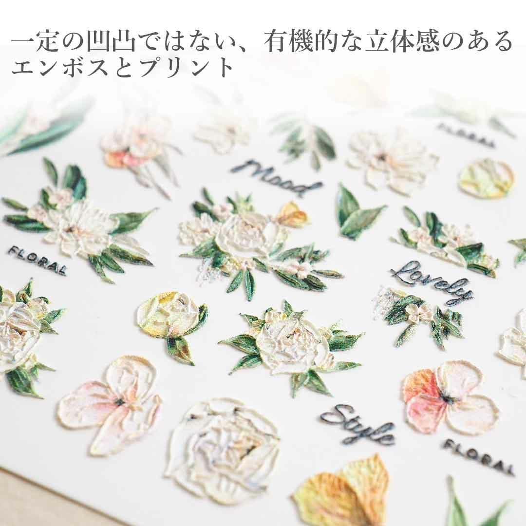 ウォーターネイルシール エンボスマット ホワイトフラワー&リーフ