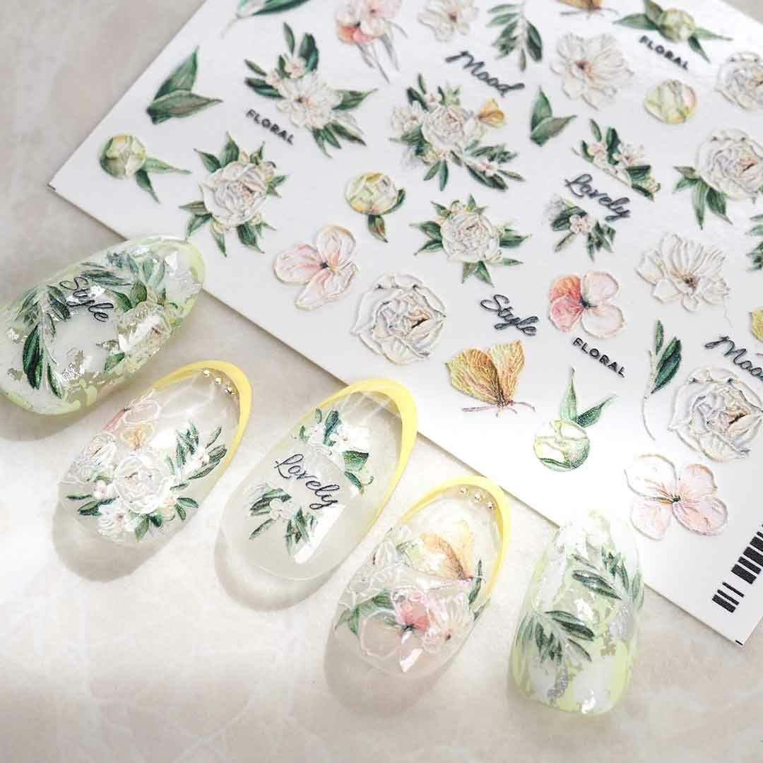 ウォーターネイルシール エンボスマット フラワー&バタフライ